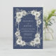 Navyblå Blommig Krans Bröllop Inbjudningar