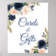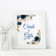 Navyblå & Blush Blommig Bröllopsdagsfest Kort och Poster