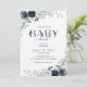 Navyblå Boho Blommig Bebisdusch Inbjudningar