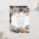 Navyblå, brändorange och champagne blomster sommarbröllopsinbjudan. Perfekt för ett sommarträdgårdsbröllop.