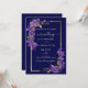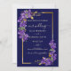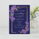 Navyblå bröllopsviol Purpur Guld ram Inbjudningar