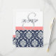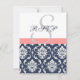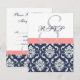 Navyblå Damask Bröllop Svarskort Korall OSA Kort