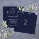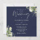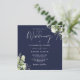 Navyblå grönska blomster monogram fyrkantig bröllo inbjudningar