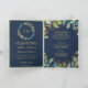 Navyblå guld eukalyptuskrans QR-kod bröllop Inbjudan