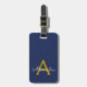 Navyblå Guld Girly Skript Monogram Namn Modern Bagagebricka