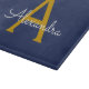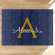 Navyblå och guld enkel skript monogramnamn skärbräda. Detta gör den perfekta examen, födelsedag, bröllop, brudshow, årsdag, baby shower eller möhippa present för någon som älskar glamour lyx och chic stilar.