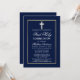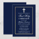 Elegant Navy Blue Första nattvarden inbjudan med kors. Guld ram.
