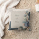Gör ett statement med den sofistikerade elegansen hos denna lyxiga blå hortensiakudde. Konsten visar en fantastisk blandning av bottniska växter i svala toner och abstrakta element. Fokuspunkten är en stor klunga av marinblå och dammig blå hortensia blommor och sammetsmjuka blad, som står i vacker kontrast till den varma taupegrå fyrkanten i mitten. Bakgrunden är en modern kolla av abstrakta geometriska block i nyanser av djup marinblå och mörk teal, med en subtil prickig textur och en urblekt cirkulär form i övre vänstra hörnet. Den rika, dämpade färgpaletten och det skiktade designen ger verket en överdådig, modern estetik. Denna kudde är perfekt för att förankra en chic, stämningsfull vigsel lounge, för att tillföra en touch av modern lyx till en formell vinterreception eller för att skapa en förfinad ton för en modern bröllopsfest. Den fungerar också vackert som en unik, konstnärlig accent för ett designat vardags