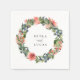 Rustika bohemiska akvarell botaniska bladkransar med marinblå och korallfärgade blommor, personliga pappersservetter. Text teckensnitt stil och färg kan anpassas.