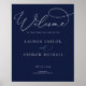 Elegant och modern, vår navyblå minimalistiska välkomstskylt för repetitionsmiddag är perfekt för en vacker, modern look. Anpassa med din bröllopsinformation i modern typsnitt. Designad för att samordna med vår Navy Blue Minimalist Bröllopssvit.