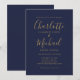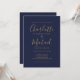 Elegant modern minimalistisk marinblå och guld signatur bröllopsinbjudan med signaturstil namn, denna stilrena bröllopsinbjudan kan anpassas med din information i chic bokstavsstil. Designad av Thisisnotme©