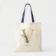 Navyblå Tote Bag Med Modern Monogram Bokstav "V" Och Guldblad