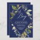 Navyblå och gröna blad pojke baby shower inbjudningar