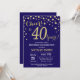 Navyblå och guld 40-års födelsedagsdiamant inbjudningar