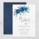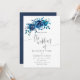 Navyblå och vit akvarellblommig bröllopsinbjudan inbjudningar