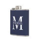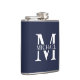 Personliga monogram och namnpresenter med personlig vit monogram i klassisk serif-stil med namn ruta i mitten av monogrammet på marinblå bakgrund.