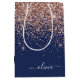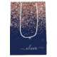 Navyblå och Rosa Guld - Blush Rosa Glitter Bokstavsmonogram Namnpresentbag. Detta är den perfekta söta 16-årspresenten, bröllop, bröllopsfest, årsdag, baby shower eller möhippa-presentpåse för någon som älskar glamourösa lyxiga och chic stilar.