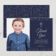 Navyblå Silver Första Kommunion Foto Tack Kort