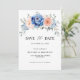 Navyblå rosafärgad blommig bröllops klara datum kort med elegant bukett av navyblå, kunglig blå, vit, rosafärgad trädgårdsros, hortensia och salvia gröna eukalyptusblad. Vänligen kontakta mig för hjälp med anpassning eller om du behöver någon annan produkt med denna design.