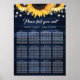 Navyblå solrosbröllopsplatskarta 12 poster