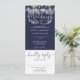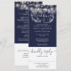En allt-i-ett bröllopsinbjudan med vackra strängljus och elegant typografi på en navyblå bakgrund. Inbjudan inkluderar ett svarsbrev som kan klippas av och detaljerad information om gäster. Designad av Thisisnotme©