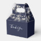 Elegant presentförpackning för bröllop med vackra strängljus, chic signatur skriptnamn och speciellt datum på en navyblå bakgrund. Du kan anpassa med ditt eget tackmeddelande på baksidan. Ett perfekt sätt att tacka dina gäster! Designad av Thisisnotme