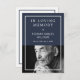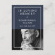 Navyblått bönkort för en begravning där du kan lägga till ett foto av din älskade. På baksidan kan du skriva en bön mot en ren vit bakgrund med en tunn blå ram.