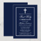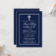 Elegant Navy Blue Första nattvarden inbjudan med kors. Vit ram.