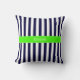 Navyblå vit rand kalkgrön namnmonogram kudde