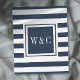 Snygg modern personlig initialfilt med ett navyblått och vitt randigt mönster med dina initialer. Designad av Thisisnotme©