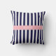 Navyblå vit rand rosa namnmonogram kudde