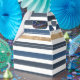 Navyblå vita guld ränder Födelsedags Baby Shower Presentaskar