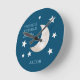 Navyblå Vita Stjärnor Måne Blinkar Liten Stjärna Rund Klocka