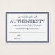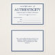 Elegant och minimalistiskt äkthetscertifikat i navyblått och vitt där du kan lägga till ditt namn eller företagsnamn.