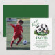 Sparka igång firandet med denna roliga, navy- och gröna fotbollsinbjudan! Med en cool vattenfärgsfotbolldesign, fet typografi och en plats för ditt barns foto är denna inbjudan perfekt för alla unga fotbollsfans födelsedag. Anpassa med festsdetaljer och gör det till en succé! Perfekt för pojkar och flickor som älskar spelet.