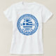 Naxos, Greklands kvinnas T-shirt med Greklands nationella Flagga i en symbol för den antika grekiska mönster-cirkeln. Njut av att bära den här T-tröjan medan du är på semester på den vackra Naxosön eller ge den som en gåssouvenir.