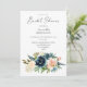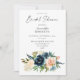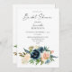 Matcha temat med din marinblå, Dusty Blue och Rosa Blommigt Inbjudningskort för möhippan.