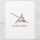 En tidningspapperversion av berömden Nazca Linjer Hummingbird geoglyph. Utformning i orange, svartvitt. Text: Nazca, Peru.