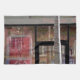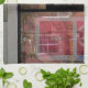 Den abstrakt grafiken på det här kökshanddumet av ZoeSPEAK är ett originalfoto av en reflektion i spaltfönstret. Det svarta fönstret och dörren ramar, tillsammans med ett handflatan träd-skräppost, ge ser bilden som modern ut. De flesta neutralter avbryts av en lax rosa färg i ett vitt fönster ram. Det finns också en del guld som skriver över rosan.