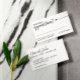 Minimalistiskt avtalat kort i vitt med svart text och en elegant pil. Lägg till kontaktinformationen längst bak i det praktiska kortet för nästa avtalade tid.