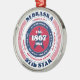 Visa din statliga stolthet den här julhelgen med den unika julprydnaden som är avsedd för Nebraska, den 37:e staten. Det har rött, vitt och blått patriotiskt färg med en cirkelformad typografi på vit bakgrund. Texten innehåller uppgifter om staten, t.ex. namn, huvudstad, statsförkortning, region, zona tidskoordinater, geografiska koordinater, året för dess självständighet och den bofasta namn. Det är en underbar gåva till dem som vill fira sin stat eller till dem som känner sig nostalgiska över sin hemstat.