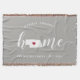 Visa lite hemstatstrots med denna söta rustika grå kastfilt med "hem" i vit kalligrafisk typsnittsbokstäver där en siluettkarta över delstaten Nebraska står istället för bokstaven "O". En röd hjärtillustration inuti statskartan fullbordar designen; du kan ändra hjärtats position till din hemstad genom att öppna designverktyget och dra hjärtformen till din favoritplats. Anpassa med din hemstad, familjenamn och etableringsår för att skapa en perfekt och minnesvärd husvärmningspresent eller tillägg till ditt nya hem.