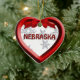 En grafisk design av snöflingor i en röd ram i 3D stil på en hjärtform Nebraska julprydnad. Ordnamnet har textmallar för din anpassning. ©2012charmainepaulson