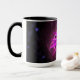 Nebula fantasi-design för ett jumbo mugg med svart på handtaget och insidan. Mugg har nebulasugnar som omger en passionsanläggning i lavender med rymd och blå stjärnor. Söt och ovanlig design. Det skulle också vara en trevlig gåva.