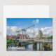 Målning av gata och traditionell nederländsk lyftbrygga i fiskesammen i Volendam, Nordholland, Nederländerna...