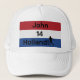 Nederländska fotbollsspelare som använder punkt som boll med nederländsk flagga i bakgrunden, anpassadet, byt ut jerseynumber och namn till din favoritspelare
