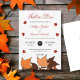Den här eleganten blir bröllopsinbjudan en perfekt för ett modernt höstbröllop. De enkla designfunktionerna som faller i löv med elegant svart och röd typografi på vit bakgrund