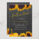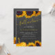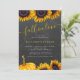 Modern gult guld solblommor och pumpkin Fall i Kärlek inbjudningskort för möhippan med chic gult-handskriftsskript på en mörk grått-kolkritbakgrund. ++++ Lämpligt för hösthöstfall vid trädgårdsodling i land party.