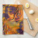 Nedfläckad abstrakt mosaic teckning, guld som brän kökshandduk
