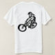 En moder på en MTB-cykel i nedförsbacke. Jag har ritat det här med vitt och svart. Ryttaren är utriven i hjälm och med stoppade redskap.
